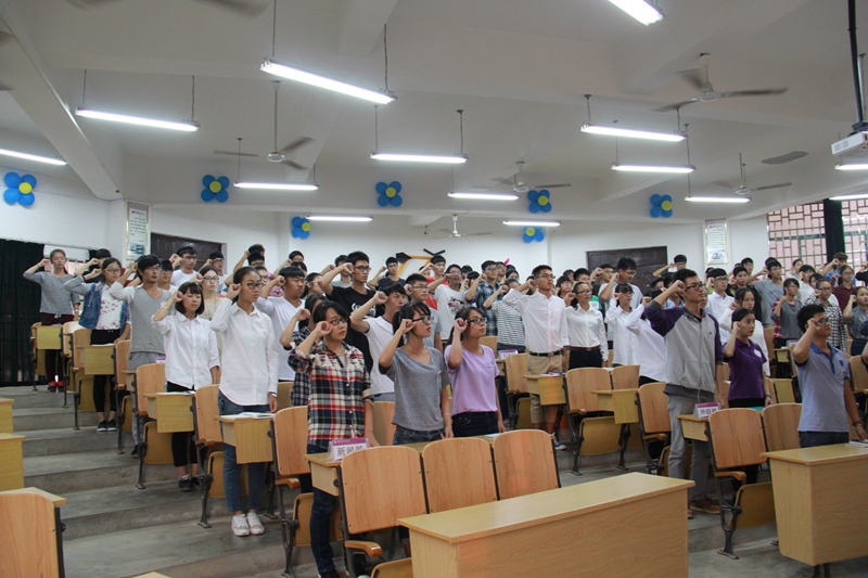 交流会开始,首先播放了学生会的工作回顾视频,随后雁山校区主席杨行通与屏风校区副主席陆潘亮相继进行发言,分享自身的工作经验的同时希望成员们把握每一次锻炼的机会,多向周围的优秀人才看齐尽可能完善自己,并对新一届的13级干部和14级新成员提出期望与要求。随后,秘书处、外联部、女生部分别以PPT的形式对14级成员进行学生会制度与文档规范、工作礼仪、生活礼仪知识技能的培训。自由提问环节,14级新成员们积极的向学长、学姐们提出自己的疑问并认真聆听学长、学姐们细致的解答。最后,在全体的宣誓声中,交流会圆满落幕。