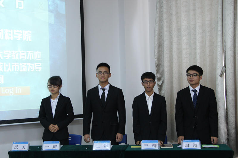 正方测绘地理信息学院与反方材料科学与工程学院就“大学教育应不应该以市场为导向”话题展开辩论。正方测绘地理信息学院以大学生活经历为例,强调当今社会需要适应社会需求人才,以市场为导向能让学生提前适应社会,反方材料学院则引经据典论证大学教育应注重培养学生的素质,不应该趋附市场追求功利。正反双方灵活的逻辑思维,精彩的表现不时赢得场下阵阵掌声,自由辩论阶段更是达到本次辩论赛的高潮,辩手们都巧妙引用各种例子,互相击破对手的观点。时间在辩手们激烈辩论中悄然流逝,评委赵博同学做完点评后,主席宣布评委评定结果,反方材料科学与工程学院取得本场比赛的胜利,正方三辩羊奕霖同学获得“最佳辩手”称号。