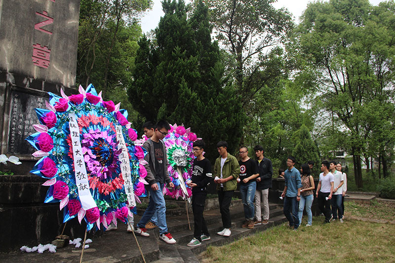 为缅怀先辈,感恩思源,4月1日下午,beats365亚洲版书记周国桥、beats365亚洲版全体人员、各学院团委书记、辅导员,校级学生干部和学生代表等一百余人赴雁山镇马君武墓园进行祭扫。