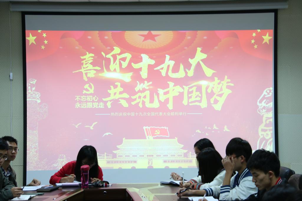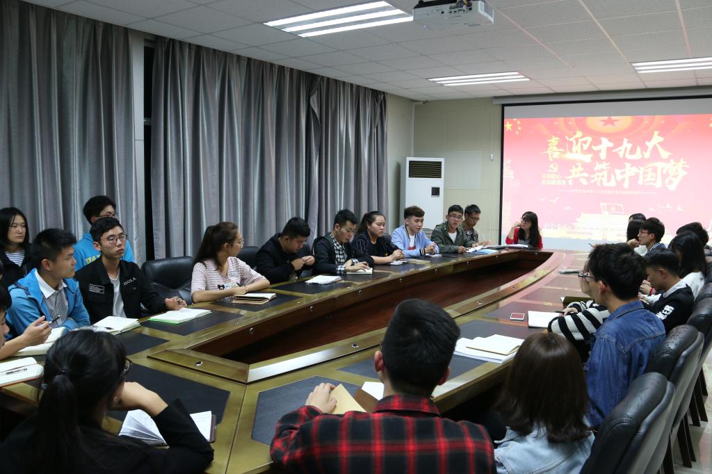 10月23日,校学生会主席团成员,各学院学生会主席、副主席于雁山校区行知楼B301会议室集中学习党的十九大精神。