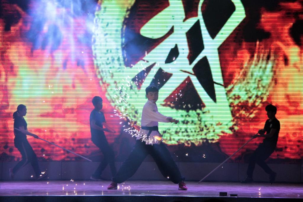 晚会在暖场节目的激情乐声中拉开了帷幕。荧幕上首先播放了让人心潮澎湃的元旦祝福视频,视频中,来自全国各地的同学用家乡的方言说出“我的梦,中国梦”的口号,它们汇聚成了一道最强的时代之音,充分展现当代桂工人的追求和梦想。本次晚会通过“忆风华•青春拂晓”、“秉初心•砥砺前行”、“新时代•再展征程”三个篇章,展示了丰富多彩的校园文化生活。由大学生艺术团出演的歌舞节目《美丽中国年》热情洋溢,迅速点燃了场内气氛;现代舞《黄河赋》亮中华气魄,展民族雄风,舞者们强劲有力的舞步如黄河之水般气势磅礴;舞台剧《逐梦桂工》中,演员用极具张力的肢体语言展现校园生活,青春无限,朝气蓬勃;《龙的传人》运用纯人声的演奏形式,将观众代入那浩瀚的文明古境,回忆起中华民族辉煌的历史;武术表演《振兴中华》立足传统,在一拳一式中,将热血男儿的爱国情怀淋漓尽致地表达出来;而由教职工艺术团倾情出演的男声独唱节目《草原月亮》充分展现了教职工的自信风采,歌声嘹亮,引得场上观众阵阵掌声。晚会首次采用了线上直播的方式,让观众们跨越空间的界限,更加真切地感受到新年到来的喜悦。最后,诗朗诵节目《今天,我们这样爱国》压轴上演,在琅琅书声中,晚会圆满结束。
