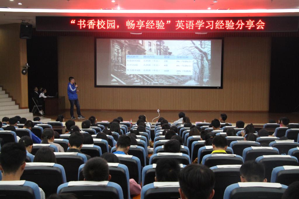 分享会上,各个英语分享达人以ppt的形式,将自己在学习英语方面的心得及方法一一道来,生动活泼。会场气氛热烈,同学们兴致盎然,在欢笑之余亦有所收获。