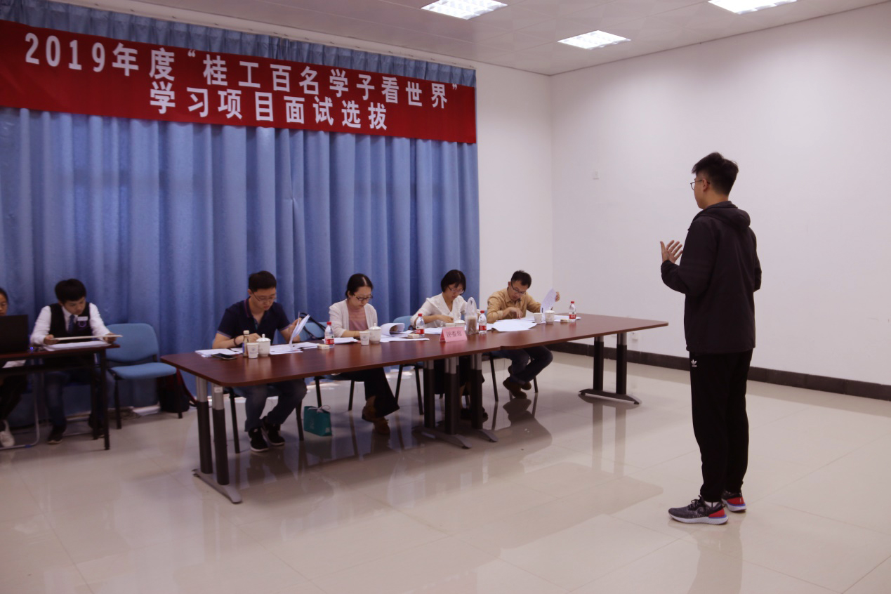 为了进一步选拔优秀学生参加2019年“桂工百名学子看世界”学习项目,本着公正、公平、公开的选拔原则,5月28日,学校在雁山校区大学生活动中心进行“桂工百名学子看世界”学习项目六个短期项目的面试选拔工作。经网上报名、资格审查、学院初选,共有298名同学进入校级面试环节。