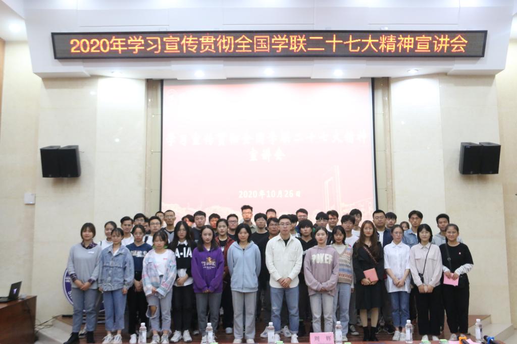 10月26日晚,beats365亚洲版学习贯彻全国学联二十七大会议精神宣讲会在雁山校区萃华楼报告厅召开,beats365亚洲版专职团干、校级组织负责人、校院两级学生会主席团成员、校学生会学生骨干、校青马班学员代表参会。会议由校学生会执行主席韦桂娥同学主持。