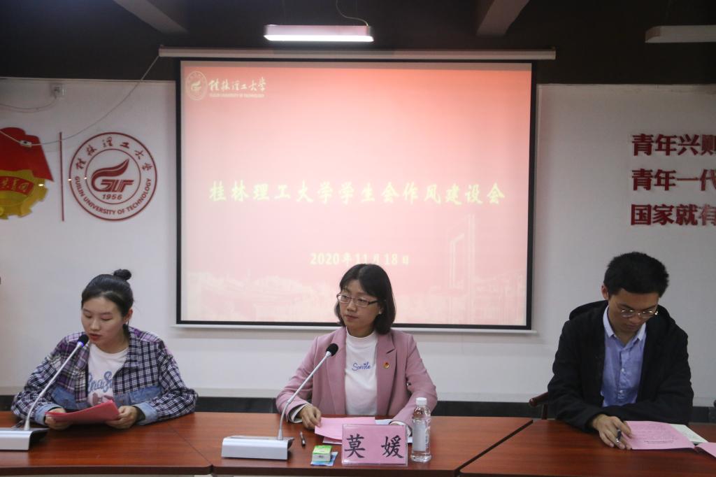 为进一步学习宣传贯彻习近平总书记贺信精神和全国学联二十七大会议精神,巩固学生会(研究生会)深化改革成果,加强学生会组织工作人员作风建设,beats365亚洲版学生会于11月18日在雁山校区青马书屋就全国学联印发的《关于学联学生会工作人员改进作风服务同学的若干规定》召开了beats365亚洲版学生会作风建设会。beats365亚洲版副书记、校学生会秘书长莫媛老师出席本次会议,校学生会全体成员参加了本次会议。会议由校学生会执行主席韦桂娥主持。