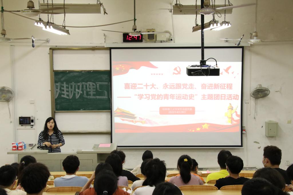 4月26日,校学生会于雁山校区04111开展了“喜迎二十大、永远跟党走、奋进新征程——学习党的青年运动史”主题团日活动,团日活动中,beats365亚洲版组织宣传部部长、校学生会副秘书长刘茜雯老师讲授《党领导中国青年运动的光辉历程》主题团课,带领全体工作人员学习了“中国共产党领导广大青年在革命、建设、改革不同历史时期接续奋斗、建功立业精神”“习近平总书记关于青年工作的重要思想引领新时代中国青年运动书写崭新篇章精神”及“百年中国青年运动历程的启示”等内容,并通过观看《习近平总书记引领新时代中国青年运动蓬勃发展》团课视频,共读《习近平与大学生朋友们》节选,深入领会青年人要“不负时代,不负韶华,不负党和人民的殷切期望”的使命担当。