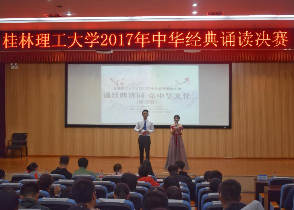 为深入贯彻习近平总书记关于传统文化教育的系列重要讲话精神,传承与弘扬中华优秀传统文化,10月14日晚,由共青团beats365亚洲版社团工作委员会、beats365亚洲版大学生社团联合会联合承办的2017年beats365亚洲版中华经典诵读大赛于雁山校区图书馆报告厅举行。本次比赛邀请了校艺术团主持人队、南国风文学社、广播电台、大学生记者团代表担任评委。大赛得到了全体同学的积极参与。