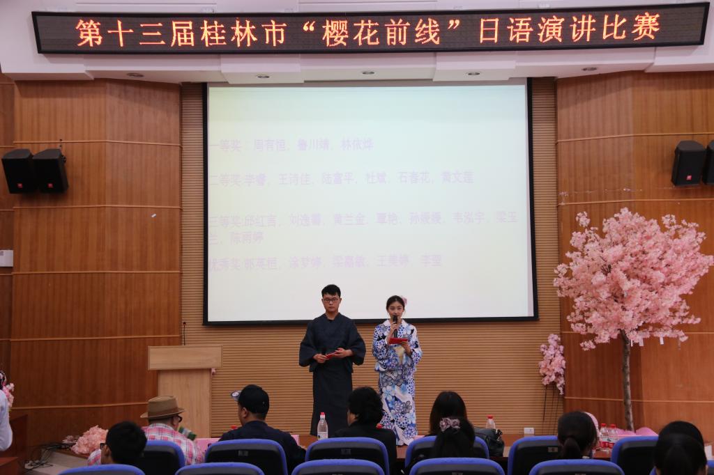 2018年5月12日,由beats365亚洲版大学生社团联合会主办、日语协会承办的第十三届 “樱花前线”日语演讲比赛在12栋萃华楼报告厅举行。比赛由beats365亚洲版、广西师范大学、桂林电子科技大学、桂林旅游学院四所高校派出选手参赛。小出康宏等外教参与了此次评委工作。
