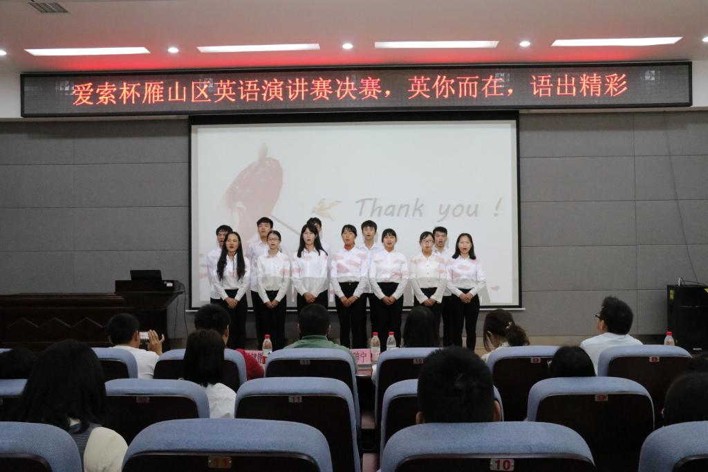 比赛伊始,首先由主持人介绍到场评委及嘉宾。欢迎仪式过后,英语演讲比赛正式开始。从旗袍到中国字画到汉服,选手们将中国文化用一种新颖而深刻的方式表达出来并且表达了他们自己对中国文化的独到见解。比赛中,由明德学社成员带来的朗诵——《礼记.大同》和黄守华同学的个人吉他弹奏——《无题》为本次比赛画上点睛之笔。最后,评委老师为获奖选手颁奖并合影留念。本次比赛在大家的笑脸中圆满结束。