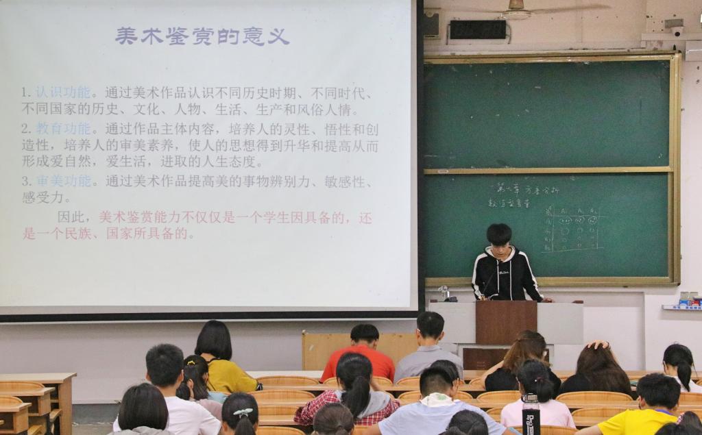 活动开始阶段,同学们有序进场入座。书画协会授课代表上台发言。为了让同学们更能充分的了解到授课内容,书画协会准备了大批量课件来详细介绍绘画历史、发展和如何去学习这一项传统文化。在活动中期,则准备了课堂问题来活跃气氛,书画协会副会长也上台介绍了自己学习绘画的经历来和同学们共勉,这也是教与学的有效结合方式。活动结束后,同学们进行扫码签到,有序的离场。有些许同学选择留下来询问书画协会的干事绘画方面的问题,以及何时进行教学。