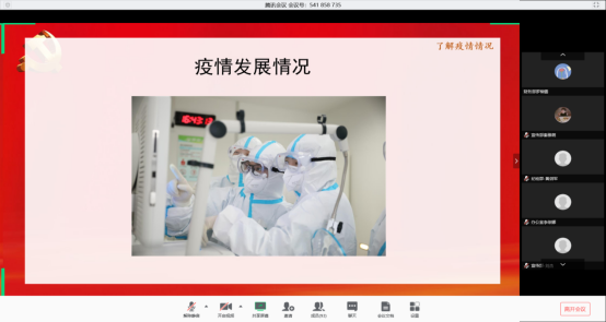 本次活动首先由宋晔同学组织活动人员奏唱团歌,接着通过观看视频及PPT讲解的方式让大家了解国内疫情防控形势,提高自我保护意识。随后以线上提问的方式考察大家对疫情的了解。接着,大家积极分享在疫情期间的感想。最后,全体成员在线上共同签订承诺书,大家纷纷承诺在疫情期间坚决服从学校各项安排,不信谣、不传谣。