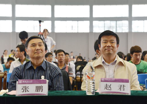 张鹏调研员在比赛上致辞,他希望同学们积极弘扬“五四”精神,为实现中国梦而发奋努力,并预祝比赛取得圆满成功!