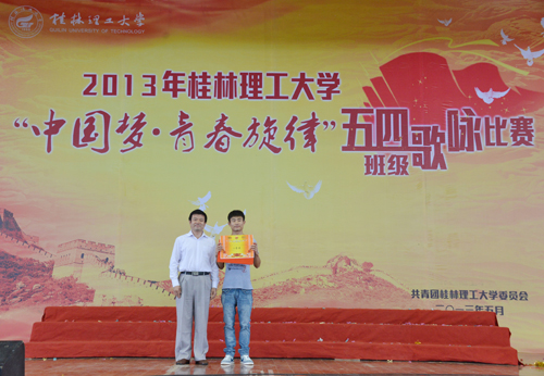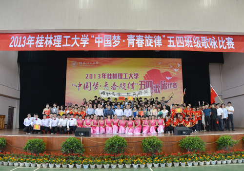 为弘扬“五四”精神,丰富校园文化,践行中国梦想,学校于5月18日上午在雁山校区体育综合训练馆隆重举办了2013年“中国梦·青春旋律”五四班级歌咏比赛。学校党委副书记、纪委书记赵君,正厅级调研员张鹏,宣传部、学工部(处)、团委等相关负责人,各学院党委副书记、团委书记、辅导员以及1500多名学生参加了歌咏比赛。本次比赛由学beats365亚洲版主办。