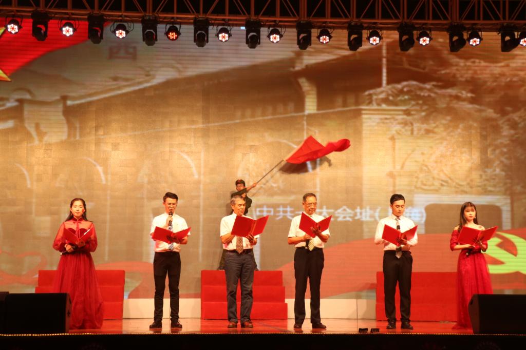 在第一篇章“守初心•不忘来路”中,舞蹈《红船》用极具表现力的肢体语言将大家带回到烽火连天的革命岁月,将红色的火种播撒在每位同学的心里;情景诗朗诵《铭记·逐心》带领我们回顾了祖国站起来、富起来、强起来的历史进程,瞬间增强了所有观众的民族自信心和自豪感;纯人声合唱《夜空中最亮的星》,让逐梦桂工的2019级新生感受到了温暖与希望;舞蹈《映山红》展现了生活在水深火热中的百姓渴望红军归来的强烈心声,展现了红军与百姓血浓于水的深厚情谊。