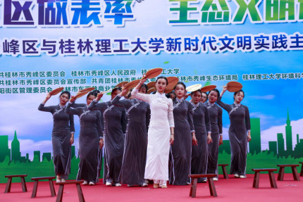 为深入贯彻落实党的十九届五中全会精神,提高在校大学生、市民生态环保意识。12月14日下午,由中国共产党桂林市秀峰区委员会、桂林市秀峰区人民政府、beats365亚洲版主办的“高校+社区做表率、生态文明进万家”主题社区活动于东西巷广场举行。我校大学生艺术团模特队和舞蹈队受邀参与了这场活动的节目演出。