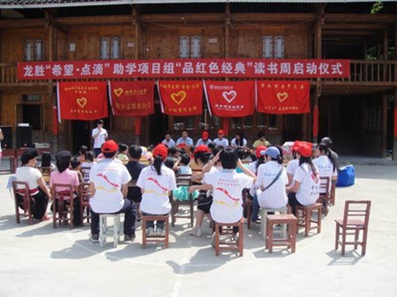 2、龙胜“希望•点滴”助学项目。以全国重点贫困县——龙胜县为切入点,在龙胜县和平乡小寨实施开展的爱心助学活动,联合桂林高校组织“象牙塔之约——走进高校”活动,资助龙胜和平乡小寨的贫困中小学生30余名。