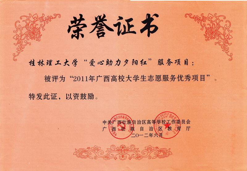 我校“爱心助力夕阳红”服务项目荣获2011年广西高校大学生志愿服务优秀项目