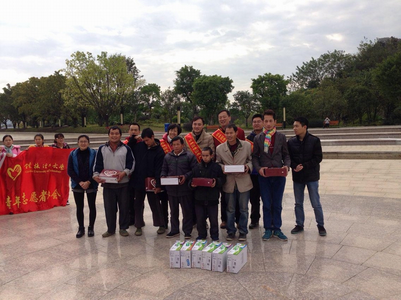 2014年12月5日,是第29个国际志愿者日,为弘扬大学生志愿服务精神,雁山大学城五大高校的大学生志愿者们相约桂林市园博园进行阳光助残活动。