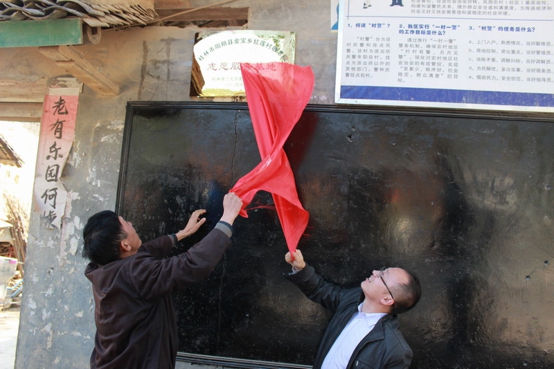张成龙老师与村委张主任一同揭牌