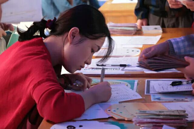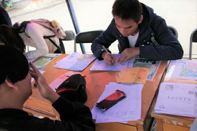 活动开始前志愿者们就早早布置好了场地,将一叠叠报名表整齐叠好,期待同学们的到来。活动进行中,越来越多的同学踊跃参与进来,志愿者们热心地向他们介绍与解惑,并引导同学们正确填写报名后相应发放一封小朋友的来信。值得关注的是外国友人也来到了现场写下对小朋友们美好的祝福。天色渐暗,活动进行到尾声,志愿者们贴心地用手电筒为赶来报名的同学照亮了帐篷,看着报名表一张张被填满,150个信封一封封被领取完,活动顺利结束。