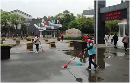 志愿者参与校园清扫活动