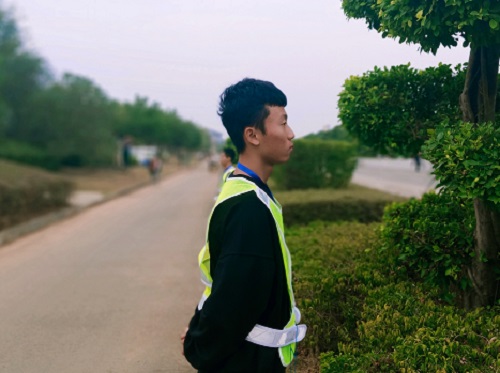 比赛期间,志愿者积极配合各路段交警及工作人员布置的工作。安保人员分列园博园大道两侧,站定后警戒周围环境,配合民警控制现场秩序。观众区的志愿者则手拿国旗、手掌拍,为参赛选手加油助威。志愿者们以饱满的精神和认真负责的态度坚守岗位,文明服务,充分体现“团结协作、敬业奉献”的桂工精神。