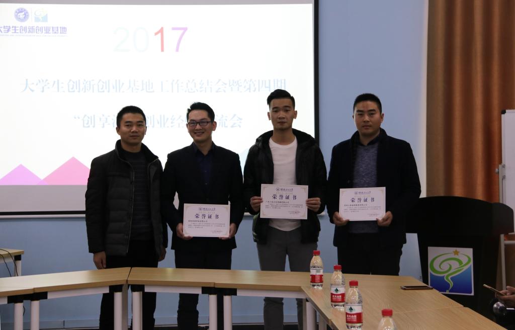 会上,周国桥老师从基地建设、日常管理、营造文化氛围、重点赛事组织参赛以及存在的问题等对2017年大学生创新创业基地的工作进行全面的总结,就2018年大学生创新创业基地工作进行部署,并为今年成功孵化出园的桂林舟游科技有限公司、桂林大象旅游服务有限公司和广西丁辰文化传媒有限公司的三位负责人颁发了荣誉证书。beats365亚洲版罗淑瑛老师就春节前大学生创新创业基地的日常管理和注意事项做了具体工作部署。