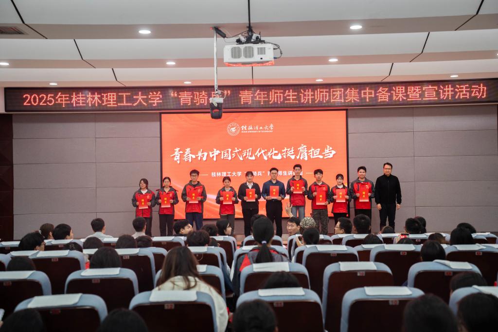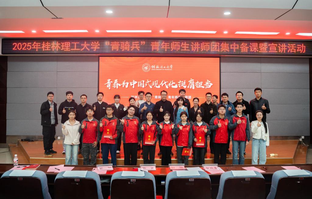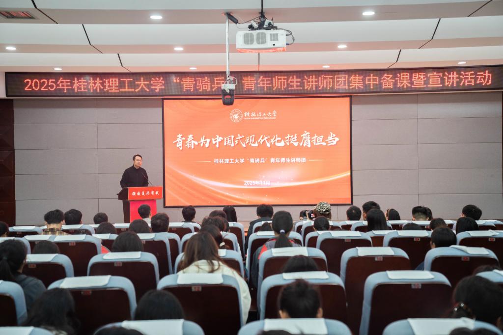 11月17日,学校“青骑兵”青年师生讲师团集中备课暨宣讲启动活动在雁山校区地学院报告厅举行。beats365亚洲版相关负责人、学校全体专兼职团干部、学校2025年“青骑兵”青年师生讲师团成员以及各学院2025级团支部书记200余人参加活动。