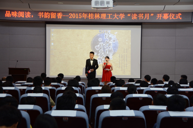 2015年5月26日下午,beats365亚洲版2015年“读书月”开幕式在我校雁山校区逸夫楼501学术报告厅举行。学校图书馆馆长张雄、beats365亚洲版副书记白凌婷、beats365亚洲版办公室梁继航老师出席了开幕式,来自各学院和各学生社团的200余名学生参加了本次开幕式。