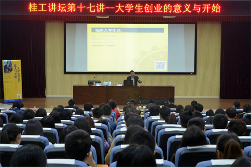报告会上,王成校友分享了自己在桂工的大学生活和学习感悟,就大学生为什么要创业、大学生如何开始创业和我们该如何平衡创业与生活三个方面进行阐述,结合自身的创业经历和工作感悟,与在场的师生分享了他对创业本身、创业精神以及创业能力的理解。王成校友鼓励同学们要树立创业意识,正确解读创业精神,要将创业精神中的坚持、勇敢和智慧运用到生活中的方方面面,要善于利用身边的资源来帮助自己创业,同时告诫同学们,一定要认真学习,平衡好生活、学习与创业,才能真正成为一名优秀的人。