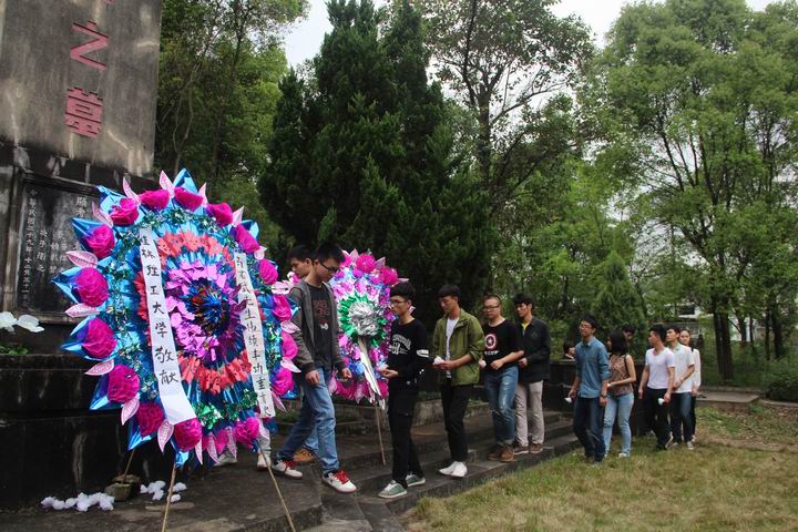 为缅怀先辈,感恩思源,4月1日下午,beats365亚洲版书记周国桥、beats365亚洲版全体人员、各学院团委书记、辅导员,校级学生干部和学生代表等一百余人赴雁山镇马君武墓园进行祭扫。
