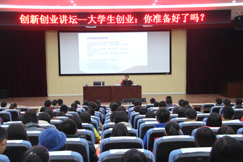 12月23日下午,桂林国家科技园大学生创业导师、学校大学生创新创业基地导师沈鸿副教授做客桂工讲坛,作《大学生创业,你准备好了吗?》创业教育专题讲座,学校200余名有创业意向的同学参加了讲座。