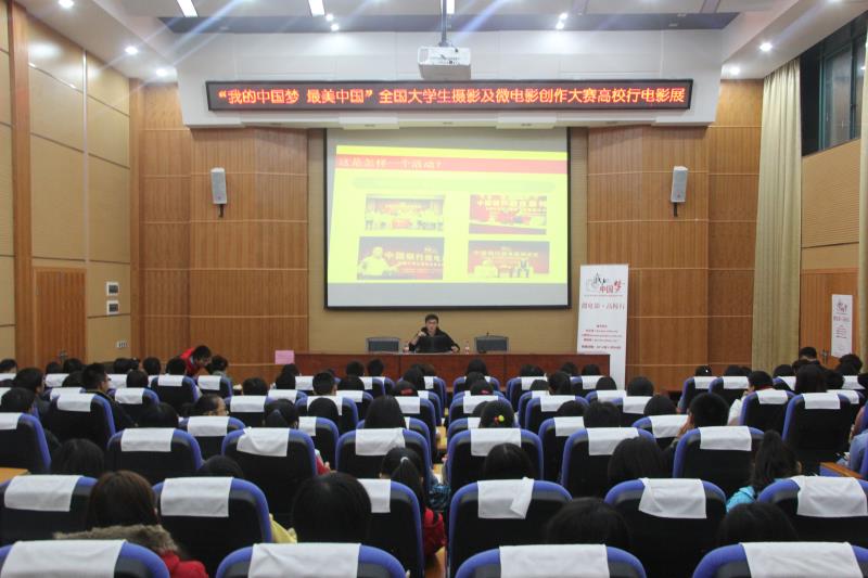 11月7号晚上7:00,《全国大学生摄影及微电影创作大赛高校巡展·理工大专场》活动在我校雁山校区12栋报告厅举行。莅临本次活动现场的有来自《文汇报》新媒体中心微博、微信部主管蒋竹云、《文汇报》视觉中心的摄影记者张挺、beats365亚洲版校园文化部贾璐老师,以及来自14个学院的160多名对微电影感兴趣的同学,此次活动由beats365亚洲版贾璐老师主持。