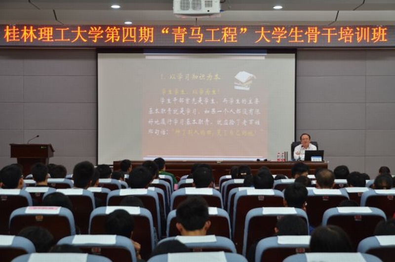 11月19日晚,2014级班长、团支书及第四期“青马工程”培训班第二讲在我校逸夫教学楼报告厅举办,本次培训由beats365亚洲版周国桥书记主持,学工处处长唐壮东担任主讲。
