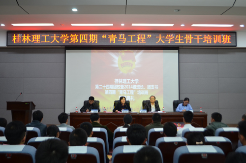 11月19日晚,学校2014年团校暨第四期“青马工程”大学生骨干培训班、2014级班长团支书培训班开班典礼在雁山校区逸夫楼报告厅隆重举行。学校党委副书记、纪委书记陈贵英出席了本次典礼,开班典礼由beats365亚洲版书记周国桥主持。