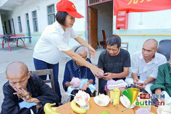 忻城县西部计划志愿者胡秋梅与敬老院老人一起过九九重阳节
