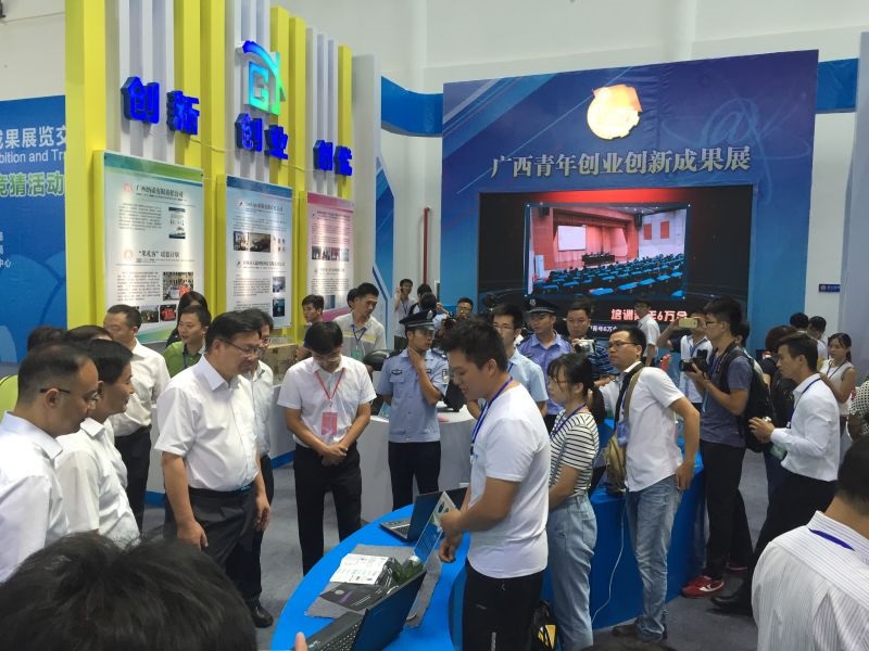 在展交会的广西青年创新创业成果展区,我校青年学生科技作品分别以实物演示、展板宣传、宣传手册发放和视频模拟演示等形式进行了展示,表现形式丰富多样,吸引了广大参会人员的关注。展会期间,自治区副主席黄日波亲临我校展区观看了参展作品并进行指导。