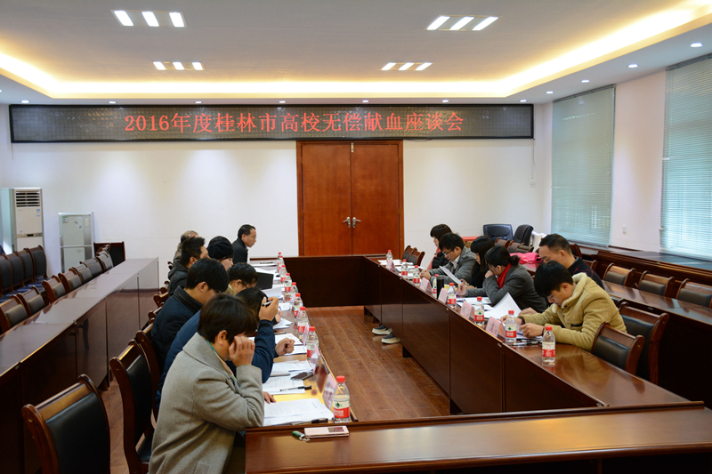 11月25日,桂林市高校无偿献血座谈会在我校大学生创新创业基地培训中心顺利举行。桂林市卫计委副主任蒋基权,我beats365亚洲版副书记陈小波,桂林市中心血站有关负责人以及桂林各高beats365亚洲版有关负责人共同参加了座谈会。