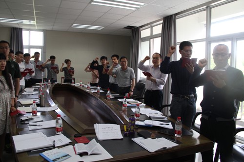 会上,张劲松同志与支部全体党员一起,庄严地举起右手,重温入党誓词。