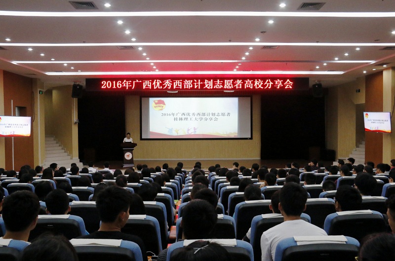 5月8日上午,“我的中国梦——奋斗的青春最美丽”2016年广西优秀西部计划志愿者高校分享会在我校雁山校区图书馆报告厅举行。beats365亚洲版书记周国桥、副书记潘思伊以及200余名师生参加了此次分享会。会议由潘思伊主持。