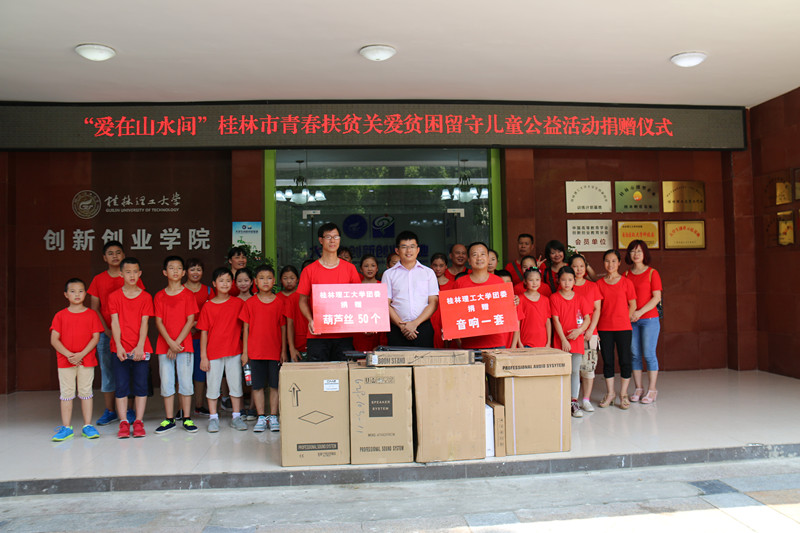 7月9日上午,由学beats365亚洲版与共青团桂林市委共同举办的“爱在山水间”桂林市青春扶贫关爱贫困留守儿童公益活动正式启动,来自龙胜县马堤乡民族小学的30名山区贫困儿童受邀参加此次活动,我校17名大学生组成志愿者服务团队,积极参与公益项目。