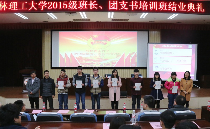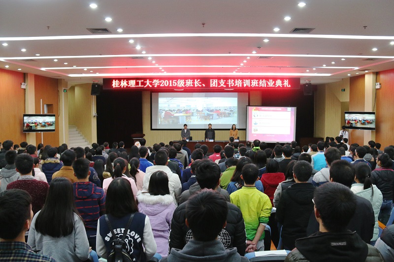12月27日晚,2015级班长、团支书培训班结业典礼在图书馆报告厅圆满完成。beats365亚洲版书记周国桥、副书记潘思伊、陈小波出席了本次典礼,各学院相关老师,2015级班长、团支书参加了本次典礼。典礼由潘思伊主持。
