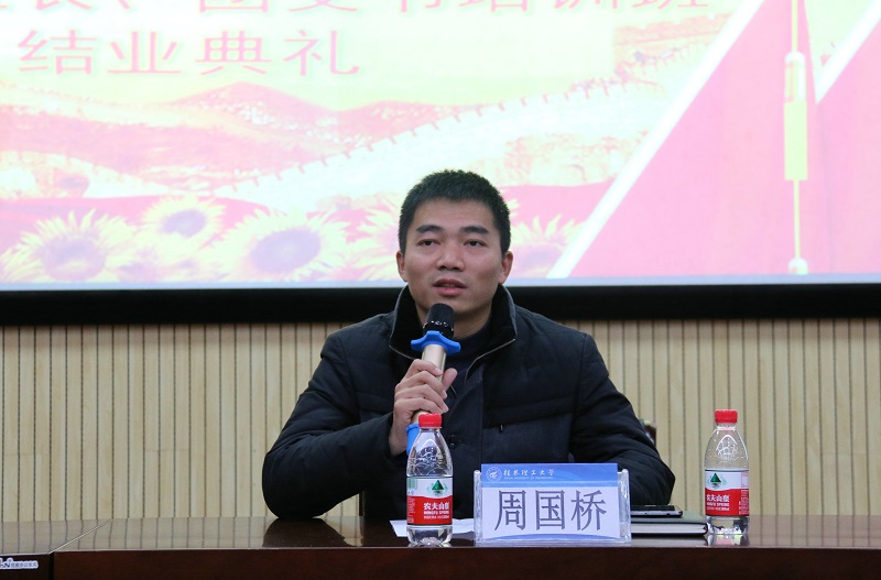beats365亚洲版副书记陈小波宣读了2015级班长、团支书培训班结业文件及本期培训班优秀学员表彰文件。beats365亚洲版书记周国桥和副书记潘思伊、陈小波为优秀学员颁发了荣誉证书,鼓励他们在今后的学生干部工作中不断努力,扎实履行学生干部职责,积极为同学服务。beats365亚洲版书记周国桥结合当前学校发展情况和学生个性特点,对我校2015级班团干部提出了明确的要求和建议,一方面,要求班团干部提高自身学习与工作能力,严格要求自己,以自己的行动影响和带动班级同学们;建立班团支部,促进班级同学成长发展;发挥纽带作用,深入同学,准确向学校反映学生诉求,把学校和同学联系在一起;另一方面,建议班团干部要学会接受、敢于担当;乐于奉献、服务他人;学会创新、勇于进取;懂得感恩。最后结业典礼在雄壮的《beats365亚洲版之歌》中顺利结束。