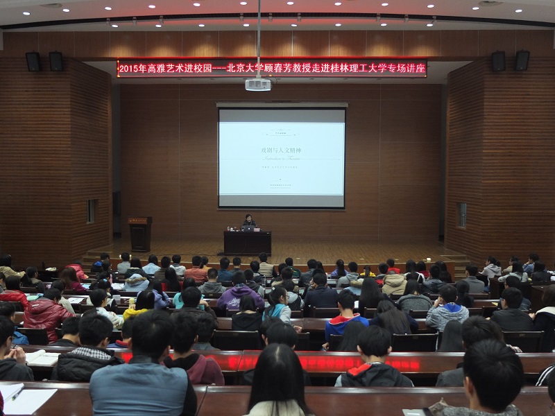 11月12日晚,教育部高雅艺术进校园特聘专家,北京大学艺术学院教授、博导,戏剧学博士,艺术学博士后顾春芳教授在我校屏风校区图书馆报告厅作了题为《戏剧与人文精神》的艺术讲座。讲座由beats365亚洲版书记周国桥主持。