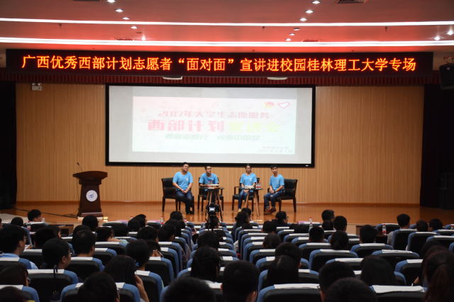 5月7日,“青春喜迎十九大,志愿服务中国梦”2017年广西优秀西部计划志愿者“面对面”宣讲进校园活动在我校顺利举行,学校西部计划项目办相关人员以及全校200余名学生参加了此次宣讲活动。
