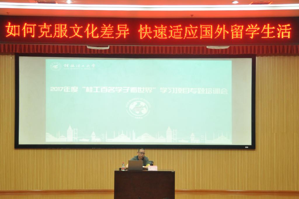 为顺利推进2017年度“桂工百名学子看世界”学习项目开展,确保项目顺利实施,5月-6月期间,学校针对项目指导老师以和项目团队学员进行了系列专题辅导、教育和培训。