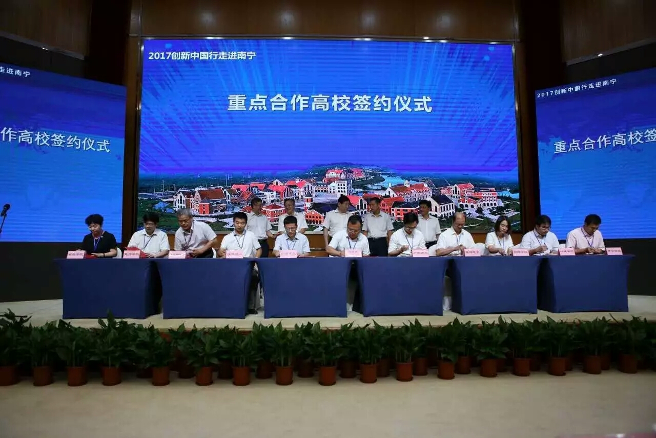 会上,学校创新创业学院与中关村信息谷公司签约,达成创新创业人才培养合作协议,共建就业创业平台。双方将以培养学生的创新创业能力为根本目标,以创新创业教育和创新创业实践为支撑,利用南宁·中关村创新示范基地的平台优势,实现校企深度融合,推进学校创新创业教育改革。