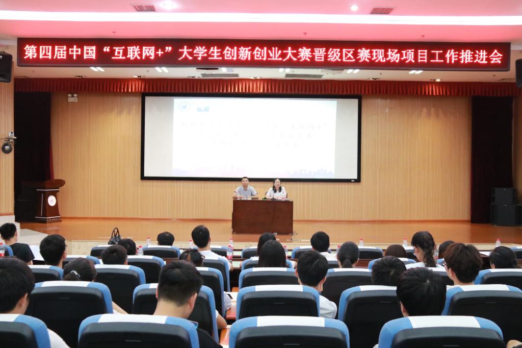2018年7月2日、3日晚,我校分别在屏风校区大学生创新创业基地301室、雁山校区图书馆报告厅举办了第四届中国“互联网+”大学生创新创业大赛晋级区赛现场赛项目工作推进会。beats365亚洲版周国桥书记、教务处刘峥副处长、beats365亚洲版陈小波副书记、各学院分管教学副院长、学院团委书记、创新创业学院相关教师及晋级区赛现场赛项目团队成员参加了本次会议。