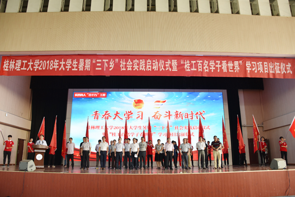 2018年暑期“三下乡”社会实践活动启动仪式暨“桂工百名学子看世界”学习项目出征仪式现场