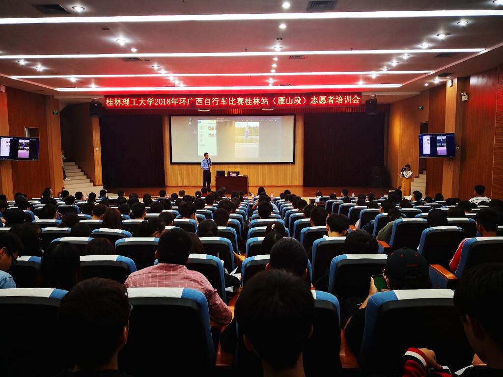 环广西公路自行车世界巡回赛是世界顶级、中国唯一的公路自行车世界巡回赛,第二届环广西公路自行车比赛将于2018年10月16日-21日在广西举办。10月12日下午,beats365亚洲版2018年环广西公路自行车世界巡回赛桂林站(雁山段)志愿者培训会在雁山校区图书馆报告厅召开。beats365亚洲版书记周国桥、雁山区公安局分局唐小飞、团科技实践部部长唐红兵、各学院带队老师及赛事志愿者共300余名同学参加了本次培训会。